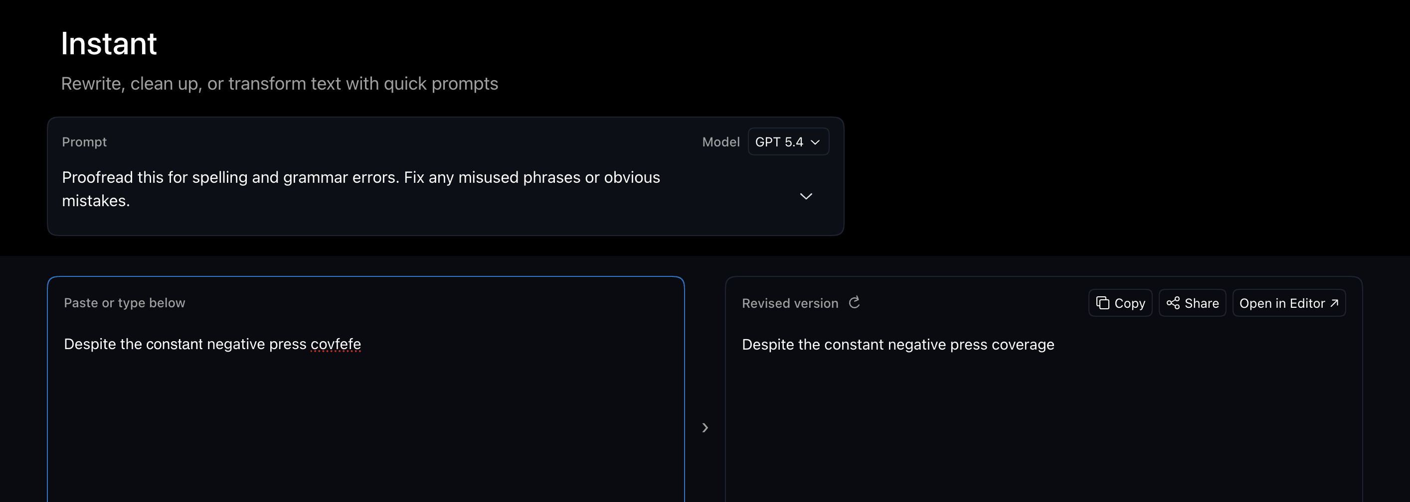 We just launched Revise Instant: a faster way to rewrite, clean up, summarize, translate, and transform text without opening the full editor first.